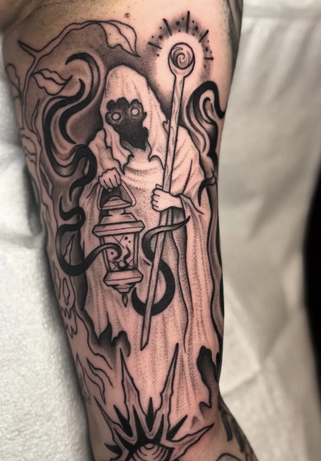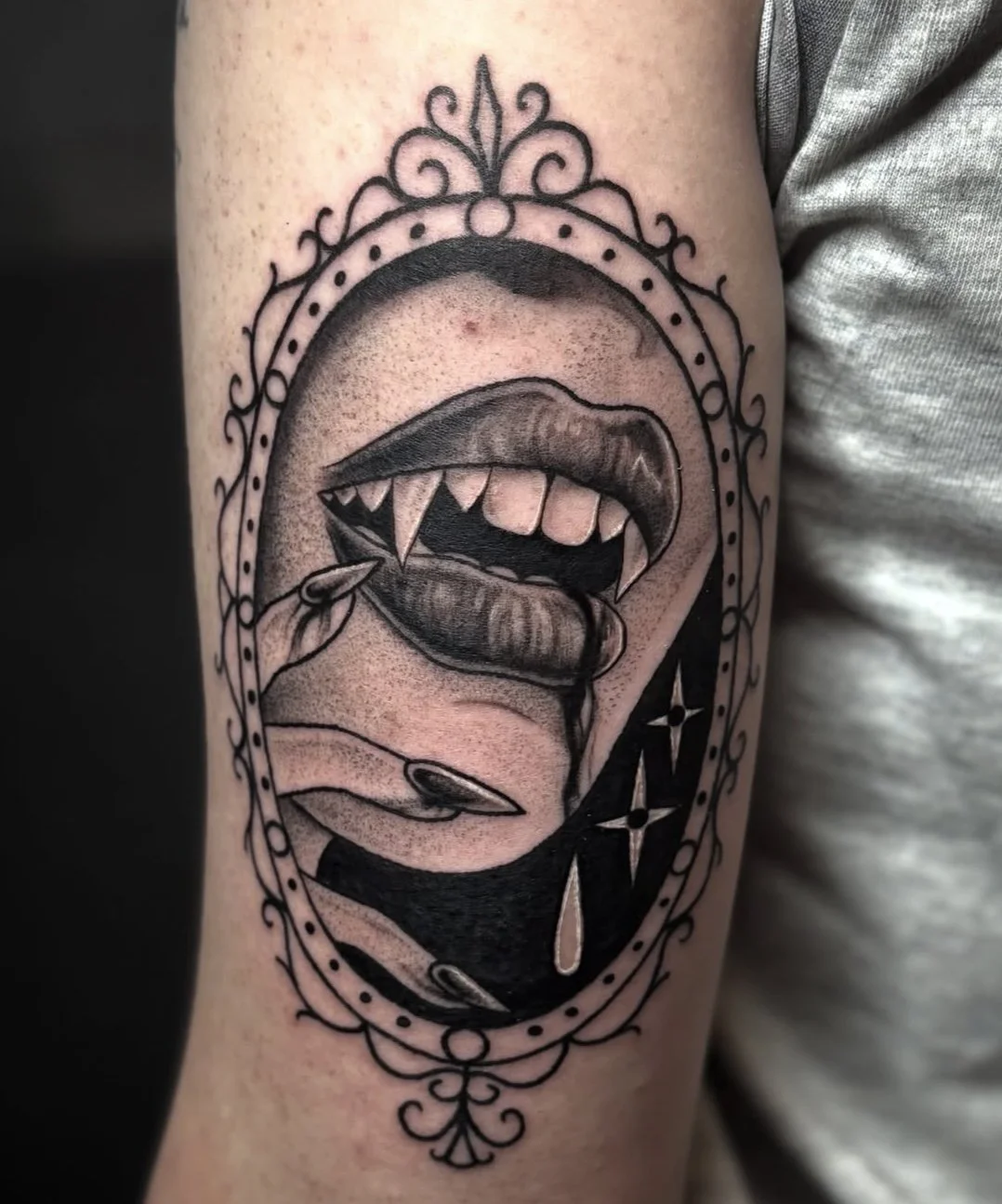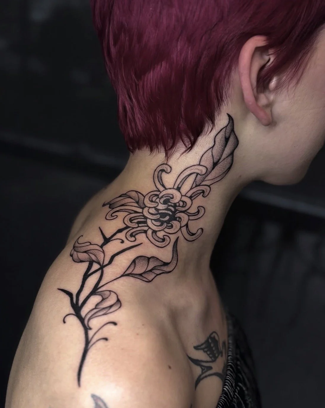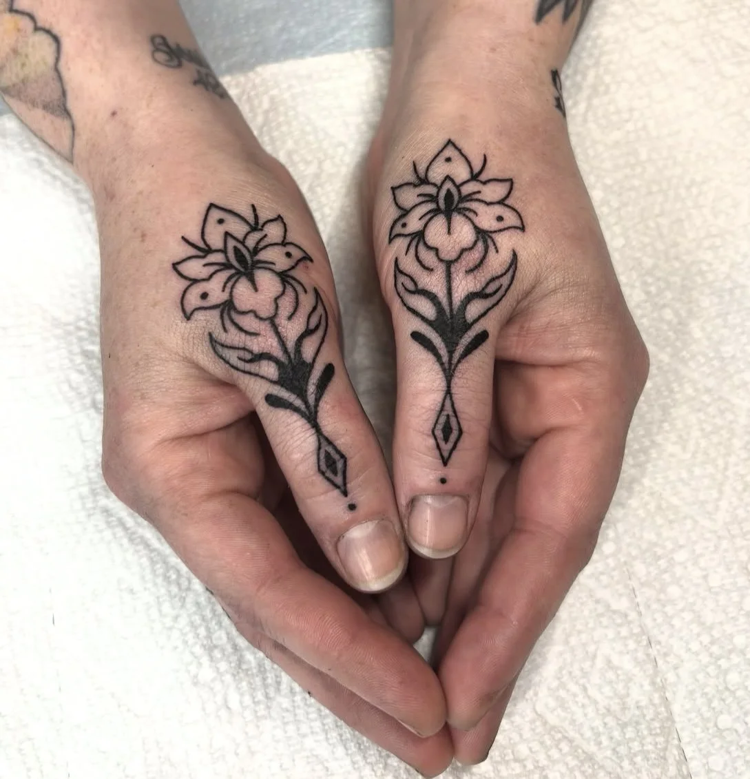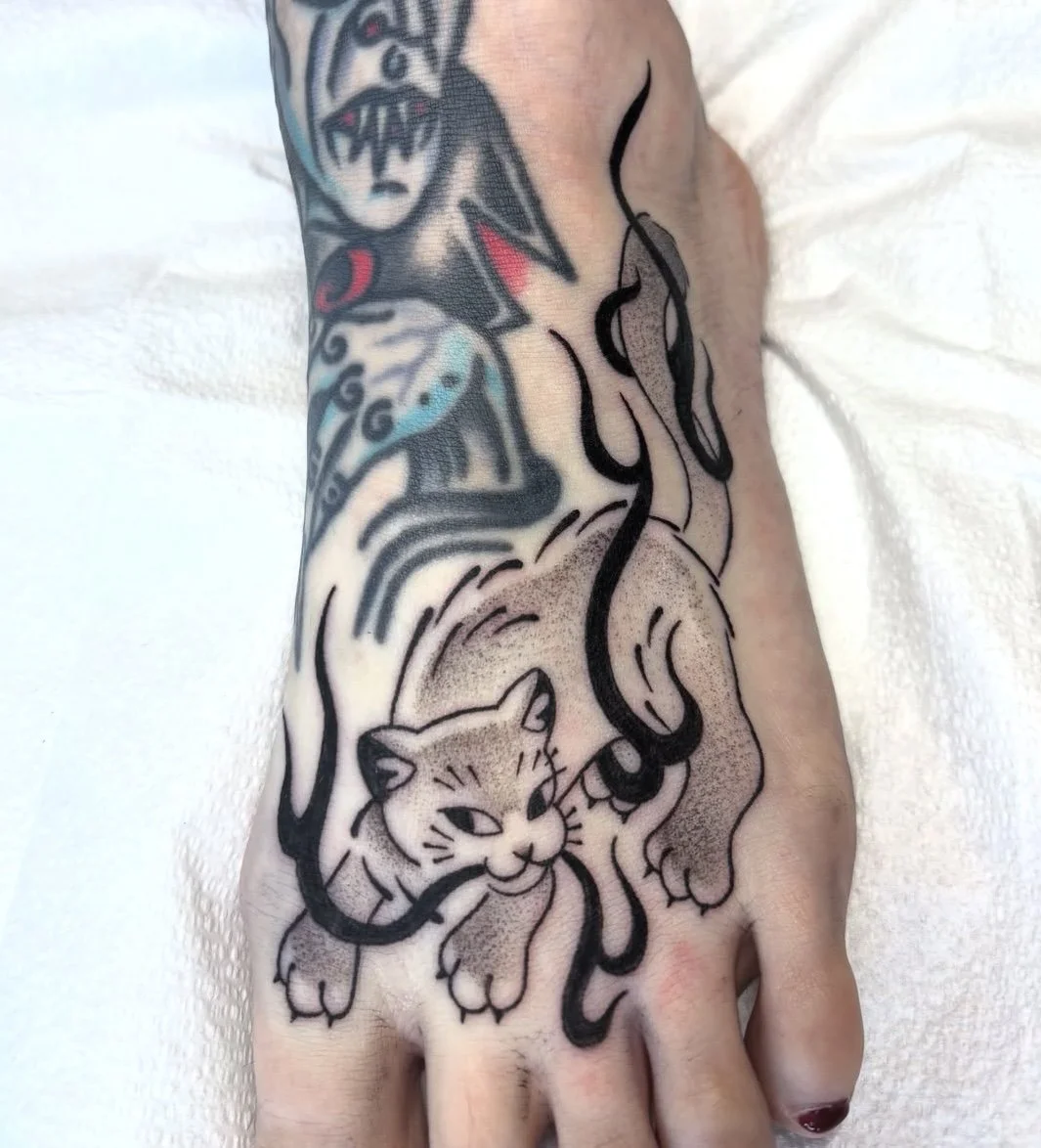 Jasmine specializes in illustrative black and grey tattoos and fine line work, with a focus on detail, contrast, and custom composition. Her favorite subject matter includes gothic and medieval imagery, botanicals, surrealism, and anime-inspired designs.