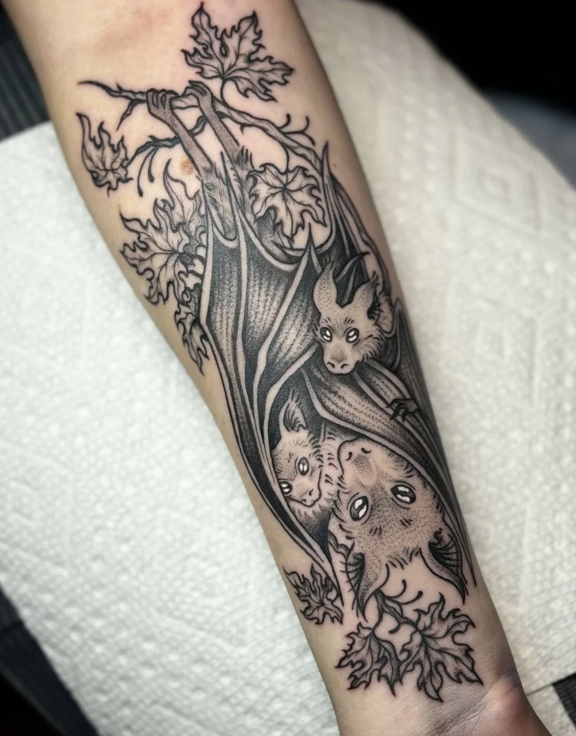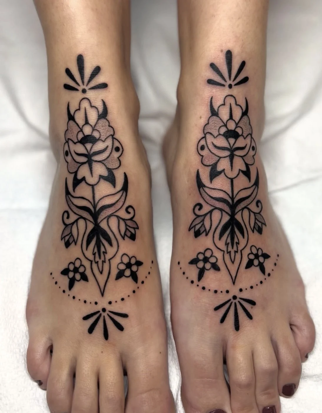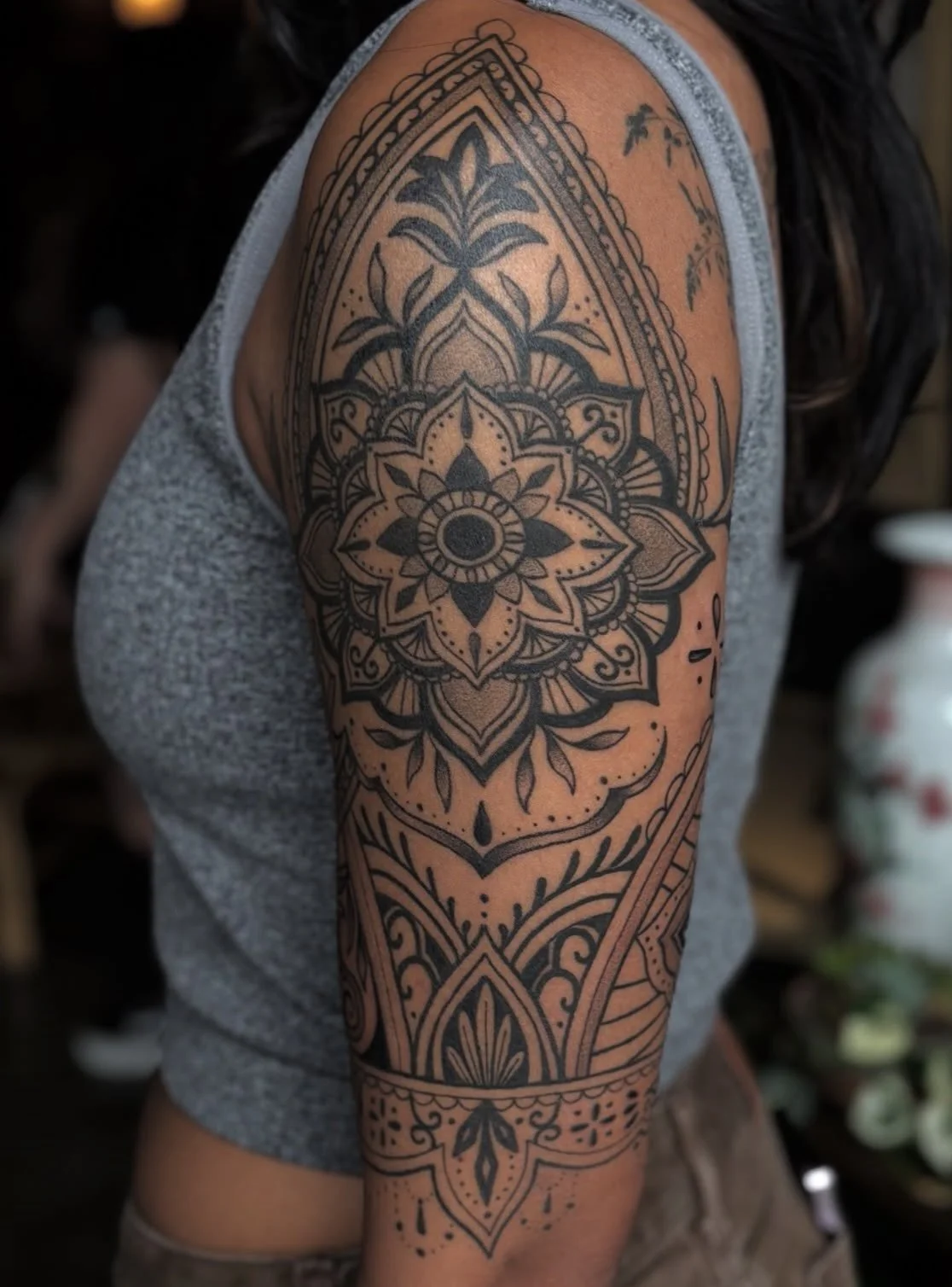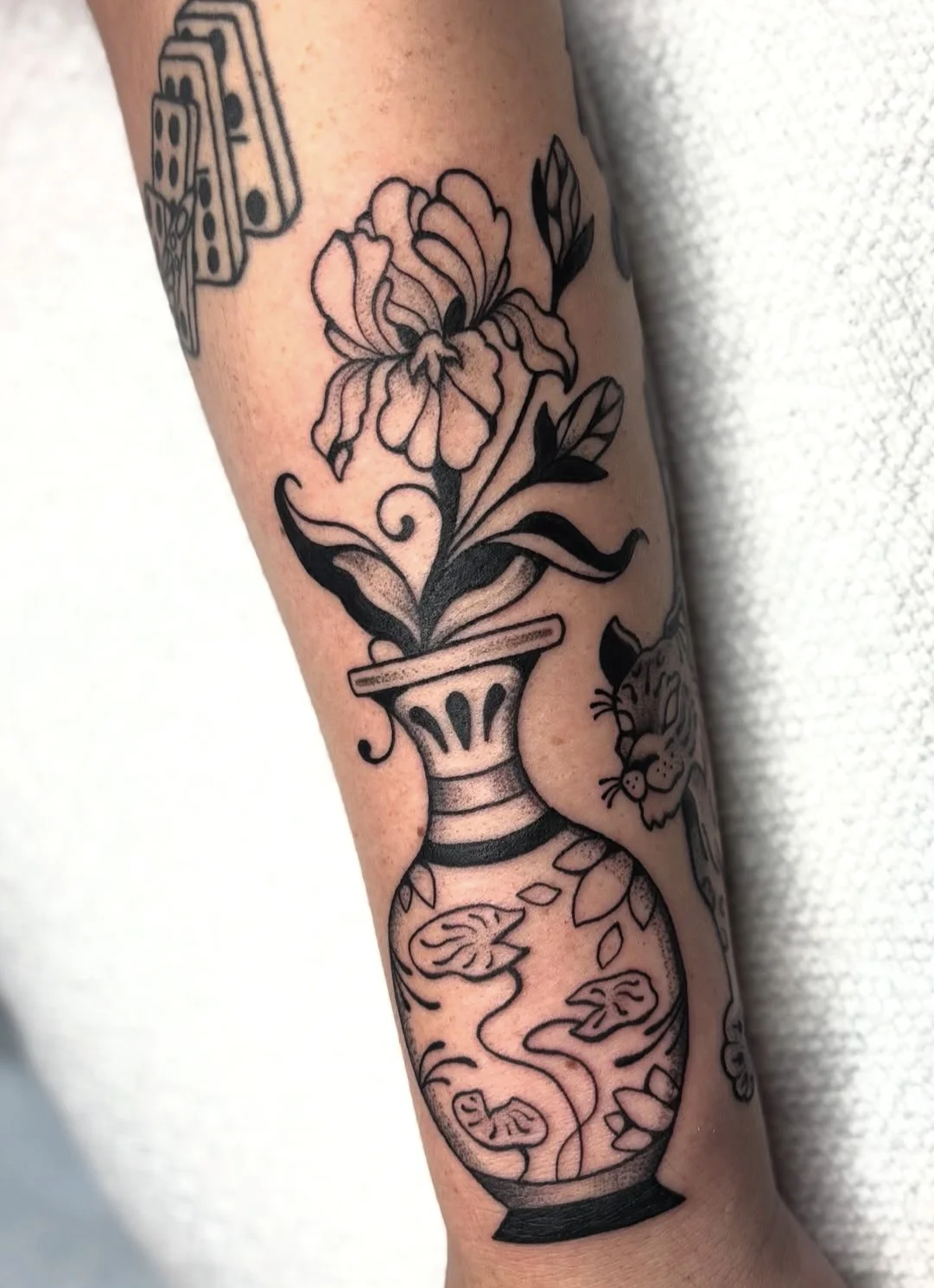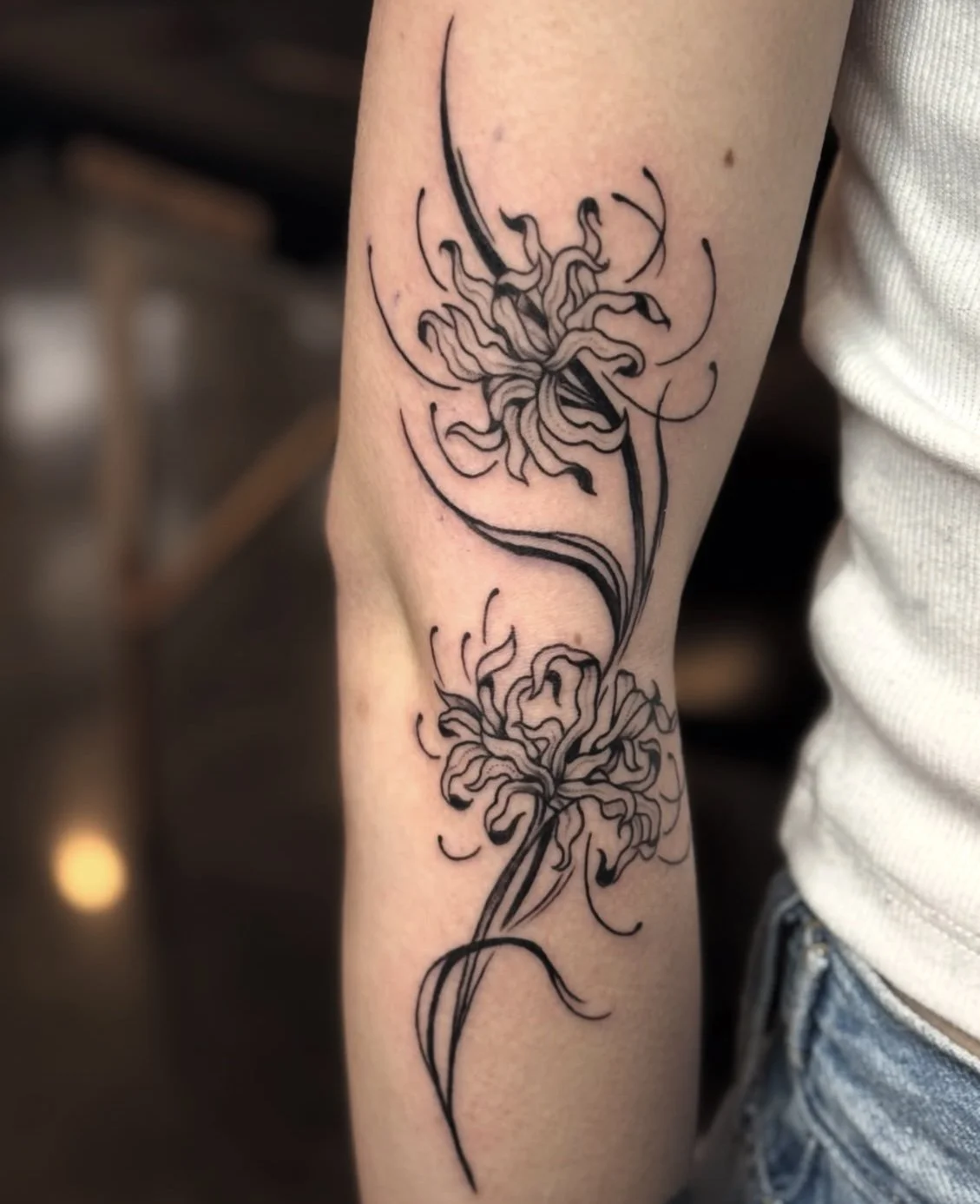 Jasmine specializes in illustrative black and grey tattoos and fine line work, with a focus on detail, contrast, and custom composition. Her favorite subject matter includes gothic and medieval imagery, botanicals, surrealism, and anime-inspired designs.